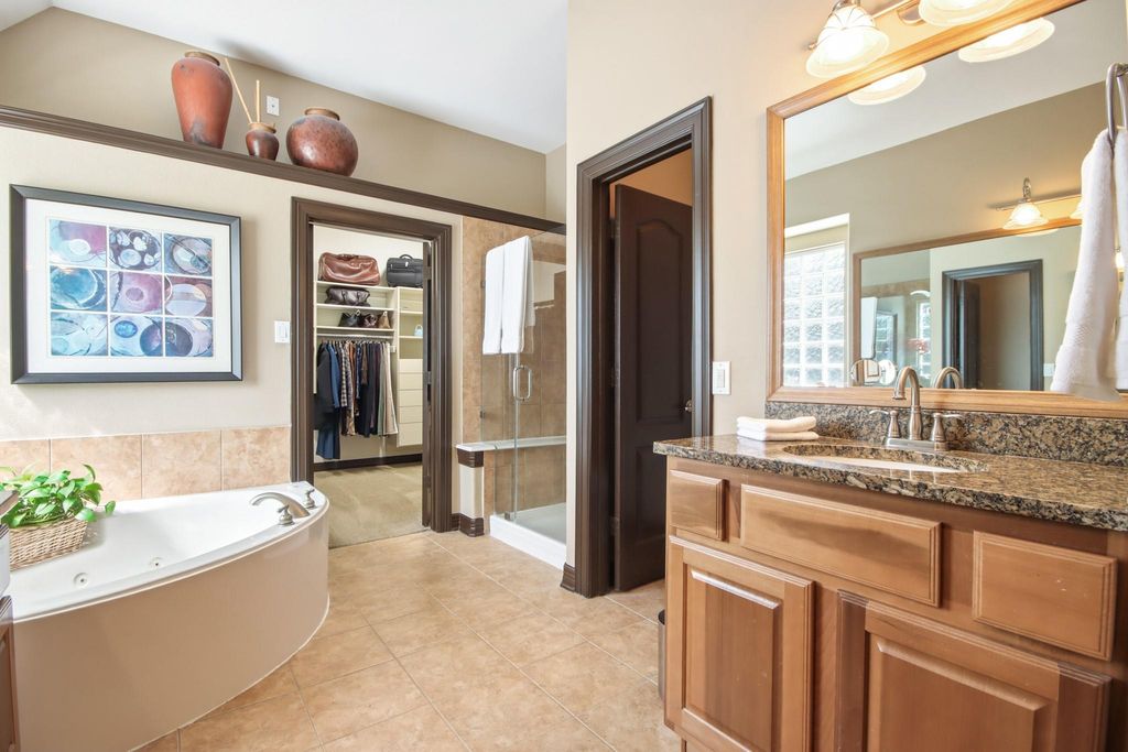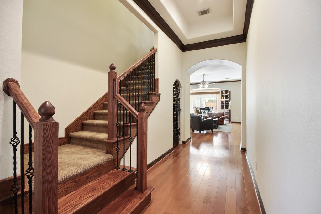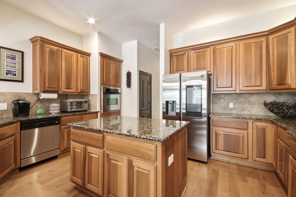 | Interior: | Fireplace: 1/Gaslog Fireplace Countertop: Granite Floors: Carpet, Engineered Wood, Tile Bathroom Description: Full Secondary Bathroom Down, Half Bath, Primary Bath: Double Sinks, Primary Bath: Jetted Tub, Primary Bath: Separate Shower, Secondary Bath(s): Tub/Shower Combo Bedroom Description: All Bedrooms Down,En-Suite Bath,Primary Bed - 1st Floor,Sitting Area,Split Plan,Walk-In Closet Kitchen Description: Breakfast Bar,Island w/o Cooktop,Kitchen open to Family Room,Pantry,Walk-in Pantry Room Description: Breakfast Room, Family Room, Formal Dining, Gameroom Up, Home Office/Study, Living Area - 1st Floor, Media, Sun Room, Utility Room in House, Wine Room Cooling: Central Electric, Zoned Heating: Central Gas, Zoned Connections: Electric Dryer Connections, Gas Dryer Connections, Washer Connections Dishwasher: Yes Disposal: Yes Microwave: Yes Oven: Electric Oven, Single Oven Range: Electric Cooktop Energy Feature: Ceiling Fans, Digital Program Thermostat, High-Efficiency HVAC, Insulated/Low-E windows Interior: Alarm System - Owned, Fire/Smoke Alarm, High Ceiling, Window Coverings |