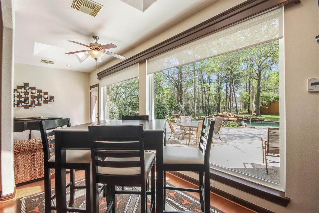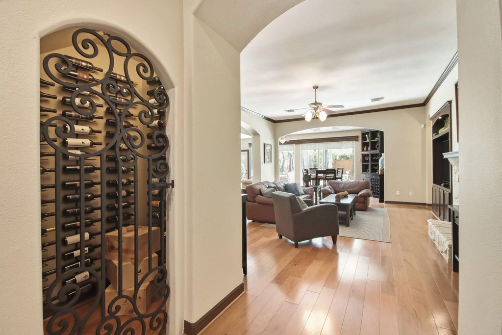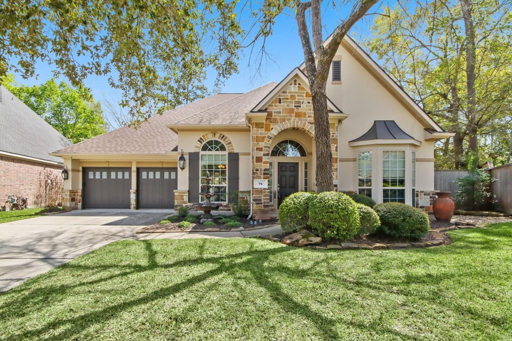 Incredible well maintained property nestled on a large cul-de-sac, golf course lot. All bedrooms down with an option to add a fifth bedroom by converting the oversized tandem garage. Open plan with family room, sunroom and extra room offering wonderful entertaining space and back yard views. Home office off the entry and two secondary bedrooms with desk nook. Wine closet with decorative iron door, stone gas log fireplace. Gourmet island kitchen and dining room. Huge primary suite with sitting area and en-suite bath. Upstairs a large game room, media room and 1/2 bath. Recent roof, exterior paint & some windows replaced. Ready for summer! You will fall in love with this fabulous back yard with a sparkling pool, gazebo, summer kitchen and firepit. Exemplary schools, parks, jogging trails and everything that makes The Woodlands such a wonderful place to live.